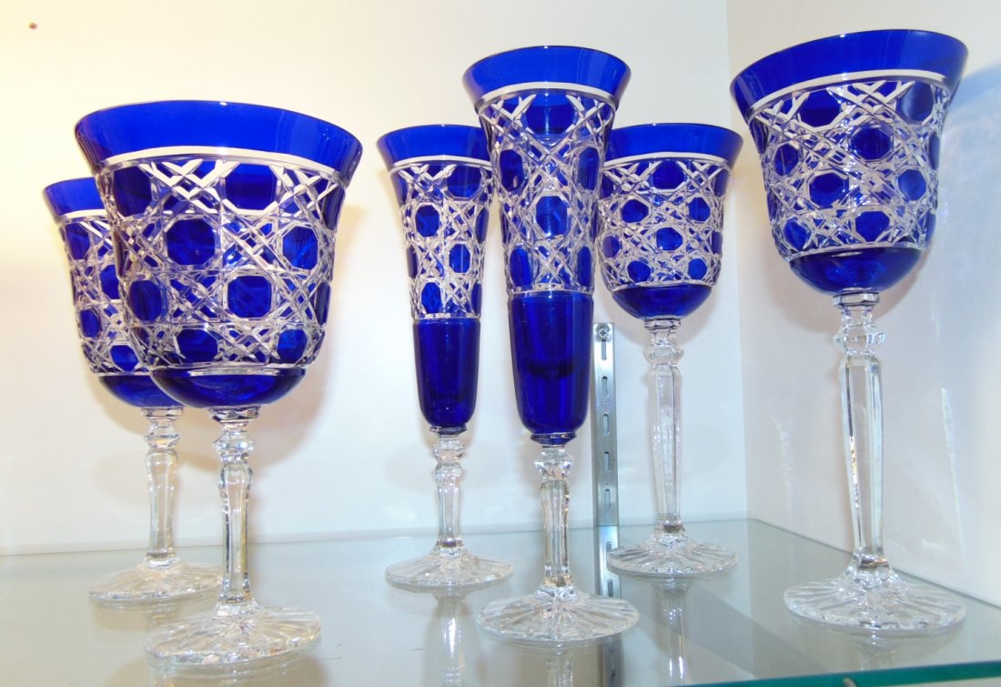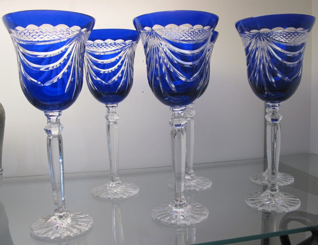 46 ($3.62/item) get it as soon as thu, jun 24. Cobalt blue crystal wine/aperitif glasses, set of 6, vintage retrogroovie. Bohemian czech crystal cobalt blue bubble stem 2 piece 8.25 wine glasses. For your consideration is one cobalt cased crystal wine glass or wine goblet. 5 out of 5 stars (66) 66 reviews $ 24.00.